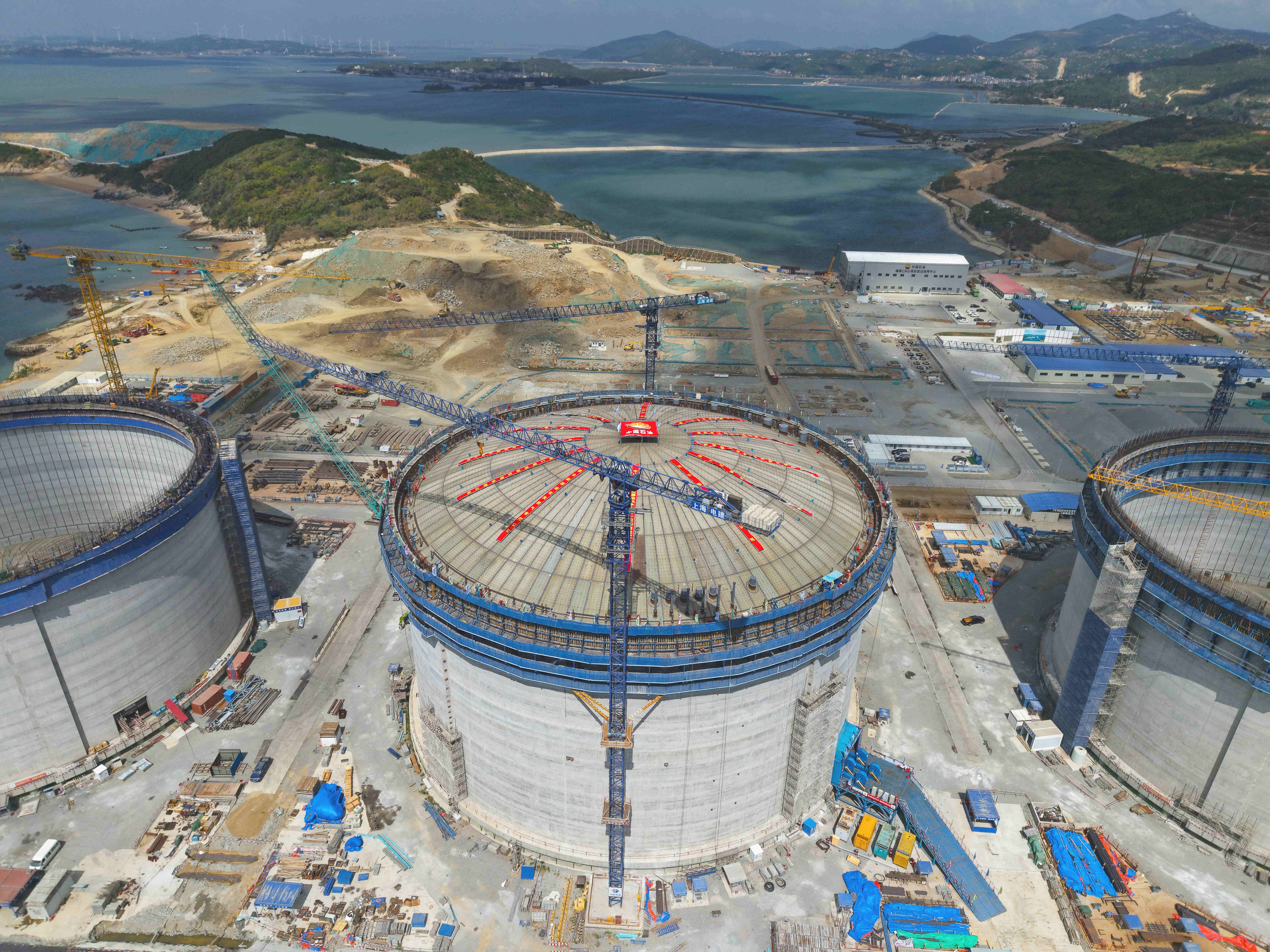 福建LNG接收站項目是國家儲氣能力建設(shè)的重點工程,也是福建省重點工程項目。項目所在的福建福清市東瀚鎮(zhèn)海岸線,是一座直面世界三大風(fēng)口海域,這里每年300多天刮著6級以上大風(fēng),更有夏、秋季節(jié)臺風(fēng)登陸頻繁,惡劣的極端天氣為施工造成了不小的阻礙。