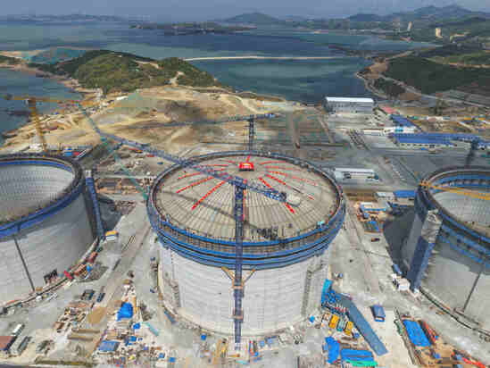 熹微的晨光灑落在鋼筋與混凝土間,身穿熒光綠馬甲的青年突擊隊員們依舊在這片鋼筋水泥的幾何結(jié)構(gòu)中忙碌不停,工地上不經(jīng)意的“幕間一瞥”,正是福建LNG接收站項目青年們的日常。自項目開工以來,這支平均年齡不滿33歲的年輕團隊提前謀劃、“跑步”進場,在國內(nèi)創(chuàng)造性地提出了“軌道式液壓滑升模板系統(tǒng)”,改寫了LNG儲罐建設(shè)的傳統(tǒng)“施工規(guī)則”。