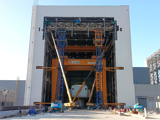 2024年底,在建筑公司參建的我國首個國家級海上風(fēng)電研究與試驗檢測基地項目的傳動鏈廠房D區(qū),一根長達27米、重量高達37.2噸的鋼桁架在狹小空間內(nèi)的提升任務(wù)圓滿完成?!肮て诳s短,成本大幅度減少,安全性又高,這個方案真是又快又省又安全!”這個讓一線員工交口稱贊的“神操作”,機具租賃站青年們是如何做到的?