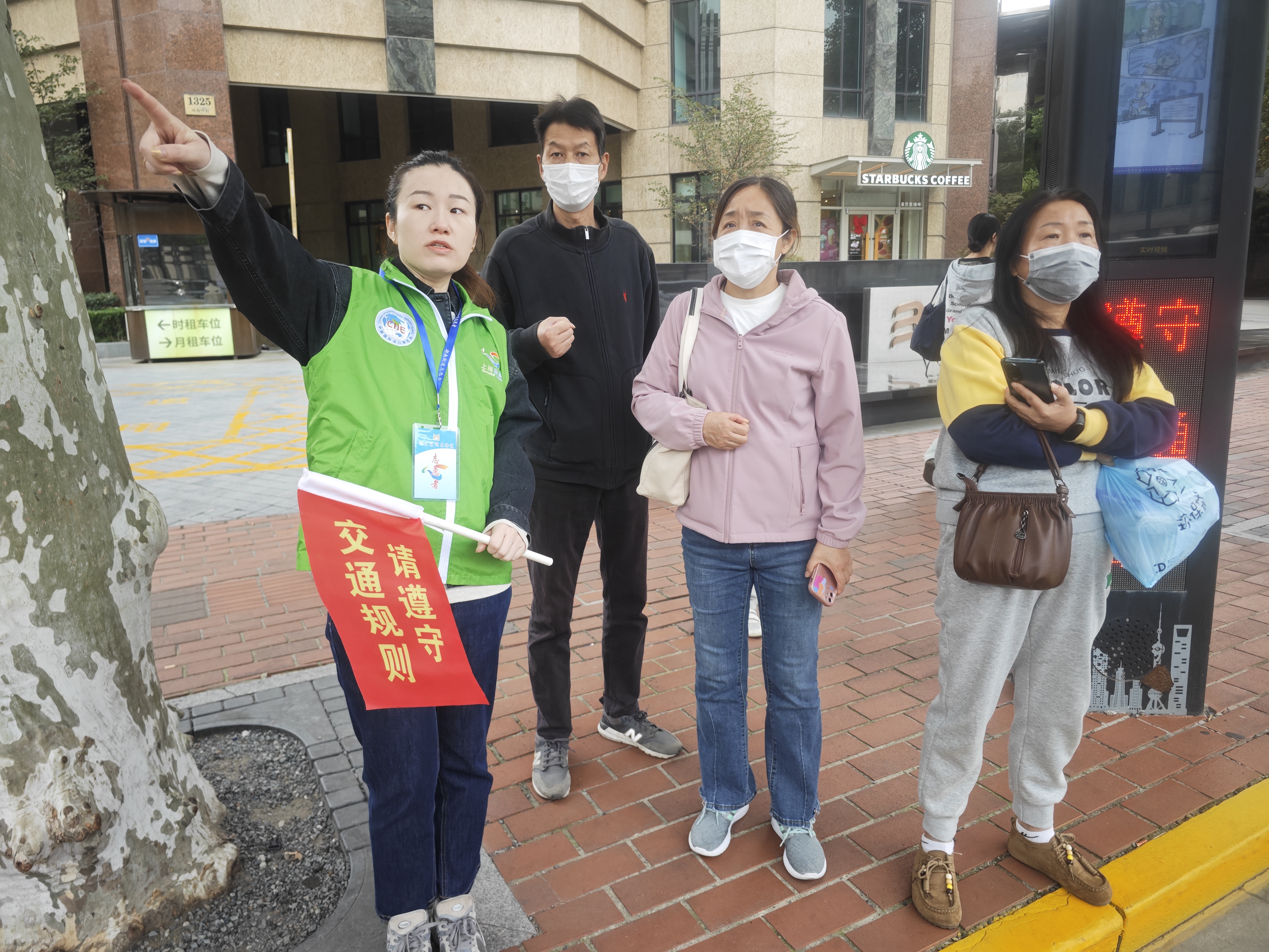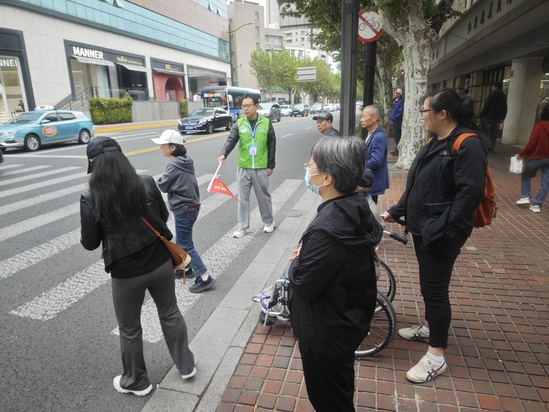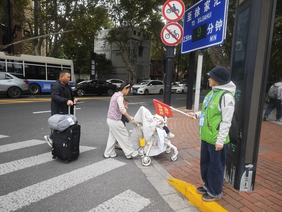 11 月 4 日清晨 7 時 30 分,在清晨上班高峰時段,志愿者們已精神抖擻地集結(jié)在淮海中路常熟路口、淮海中路宛平路口兩處服務(wù)點位。他們身著色彩醒目的志愿者服裝,手持紅色文明引導(dǎo)旗,以親切的微笑、溫和的語氣與耐心的勸導(dǎo),引導(dǎo)行人遵守交通規(guī)則、安全有序通行。面對步履匆匆的上班族與初次來滬的游客,志愿者們不僅第一時間制止機動車搶行、行人橫穿馬路等危險行為,更化身 “活地圖”,結(jié)合實時路況,高效精準(zhǔn)地為問路者規(guī)劃最優(yōu)路線。他們的身影,構(gòu)成了早高峰時段街頭一道溫暖且有序的風(fēng)景線,有效提升了重點路口的通行效率與安全系數(shù)。